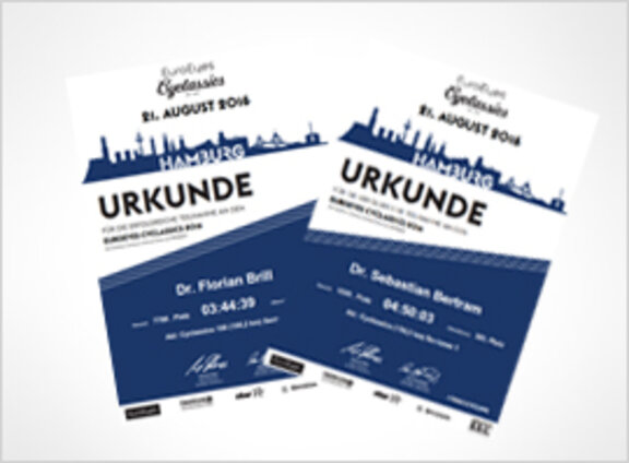 Dies sind die Zeiten, nach denen am 21. August 2016 Dr. Sebastian Bertram und Dr. Florian Brill und bei den Cyclassics in Hamburg die Ziellinie überquerten. Beide Fahrer gingen auf ihren jeweiligen Distanzen das allererste Mal an den Start (154,3 km Dr. Bertram / 100,2 km Dr. Brill). Bei guten Bedingungen - kein Regen, nicht zu viel Wind - konnten die neuen Herausforderungen auf Anhieb gemeistert werden.