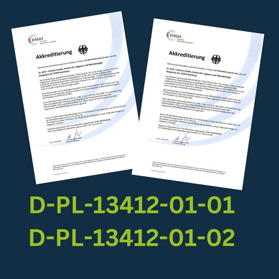 Unsere neuen DAkkS Akkredituerungsurkunden bescheinigen unserem Institut in der Bakterizidie und Viruzidie einen erneut erweiterten Prüfumfang. Die aktuellen Dokumente finden Sie HIER. Im Juni 2024 sind zudem diverse Audits der DAkkS / ZLG in unserem Hause ausgesprochen positiv verlaufen. Profitieren Sie also von der hohen Qualität und nutzen Sie das umfangreiche Prüfangebot unseres Instituts. Wir freuen uns auf Ihre Anfrage!