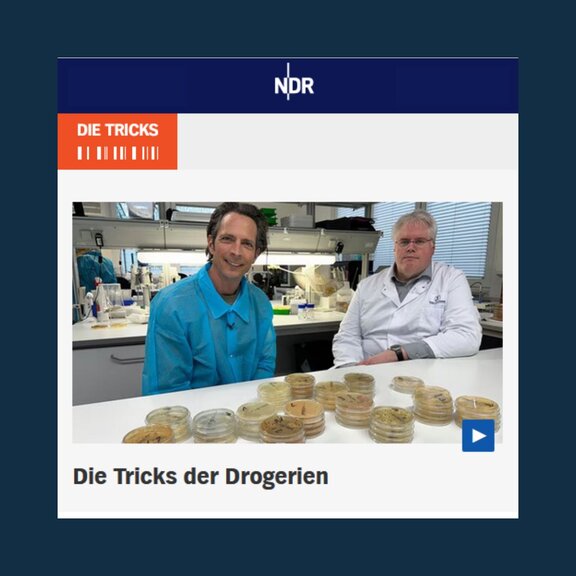 In dem Verbrauchermagazin "DIE TRICKS" vom NDR Fernsehen kam kürzlich unser Laborleiter Henrik Gabriel als Experte zu Wort. Die aktuelle Ausgabe mit dem Titel "Die Tricks der Drogerien" beschäftigte sich u.a. mit der Frage, wie es um die Hygiene der in den Drogerien kostenlos zur Verfügung stehenden Tester von Kosmetikprodukten bestellt ist. Eine Laboruntersuchung zeigte zum Teil Keimbelastungen, die aufhorchen lassen. Alles Weitere zu "Die Tricks der Drogerien" sowie die Sendung auf Abruf finden Sie unter folgendem Link. Henrik Gabriel hat seinen Auftritt ab ca. Minute 15:14 - HIER.